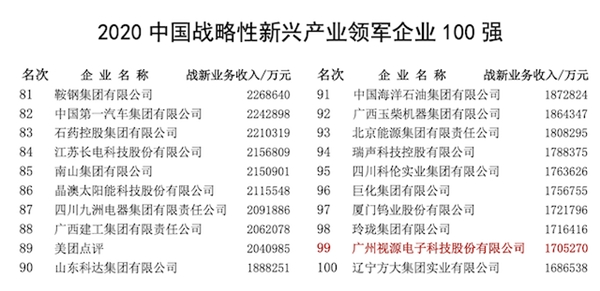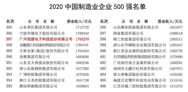 CVTE视源股份再获评2020中国制造500强、战新产业领军100强