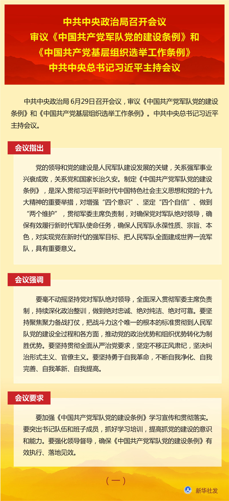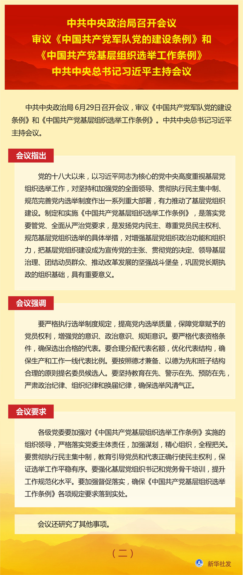 中共中央政治局召开会议 审议《中国共产党军队党的建设条例》和《中国共产党基层组织选举工作条例》 习近平主持会议